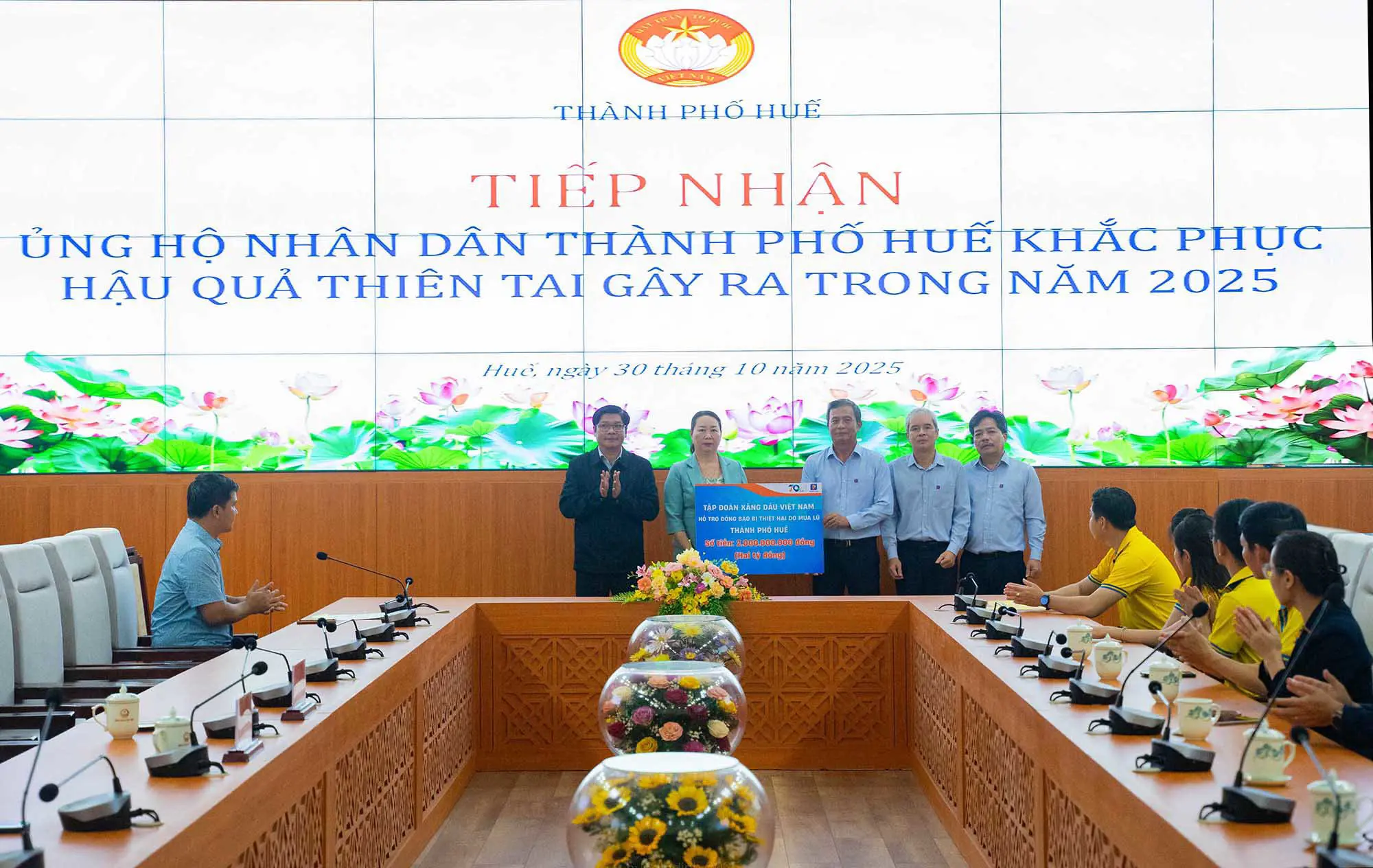 Thành phố Huế, chiều ngày 30/10/2025, tại trụ sở Ủy ban nhân dân thành phố Huế, ông Nguyễn Khoa Phong Điền, Chủ tịch kiêm Giám đốc Công ty TNHH MTV Petrolimex Huế đã thừa ủy quyền lãnh đạo Tập đoàn Xăng dầu Việt Nam trao số tiền 2 tỷ đồng thông qua Ủy ban Mặt trận Tổ quốc Việt Nam thành phố Huế để hỗ trợ người dân thành phố Huế khắc phục thiệt hại do mưa lũ gây ra.